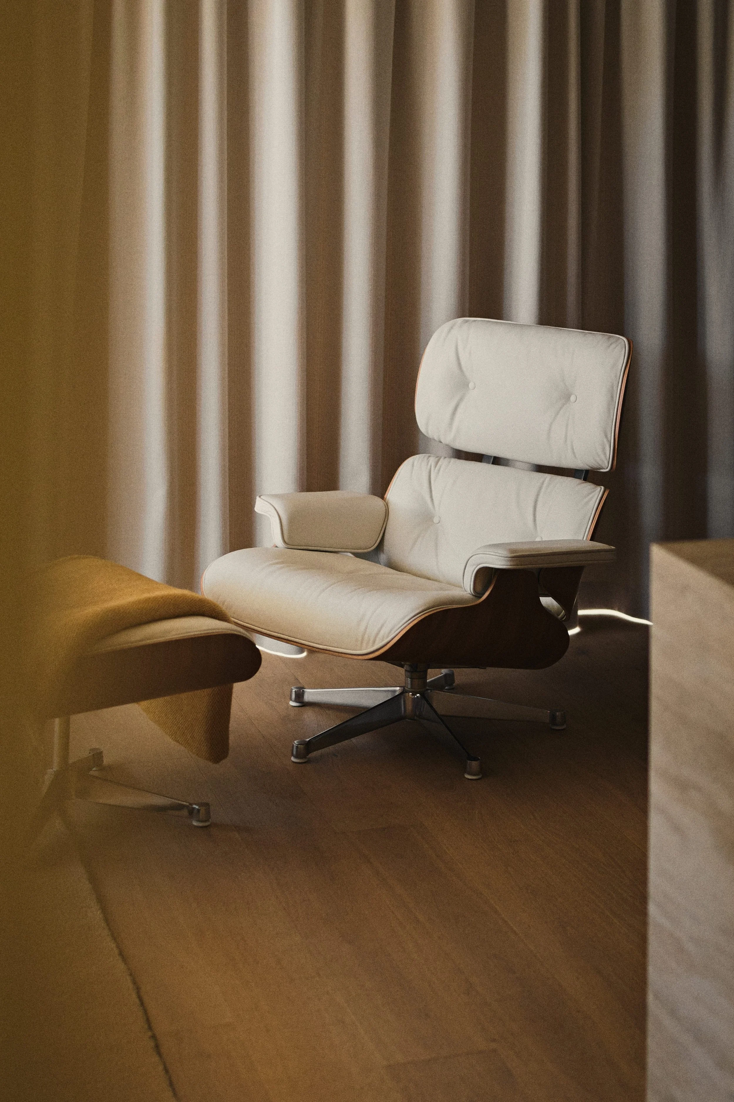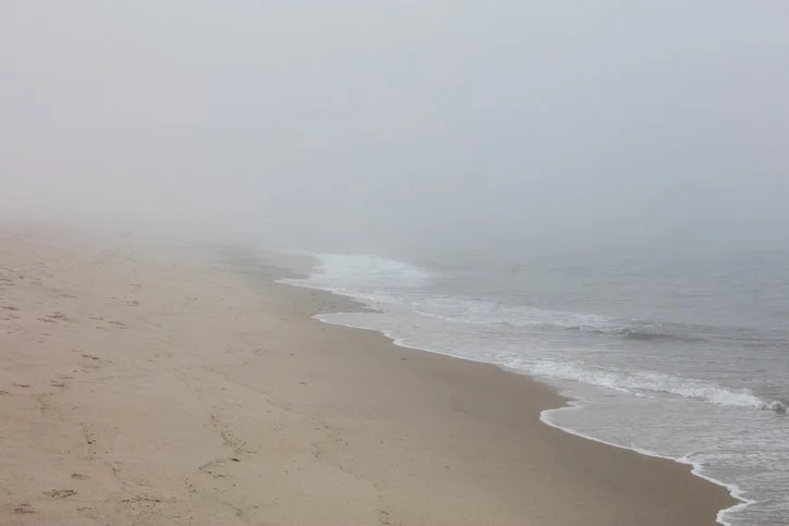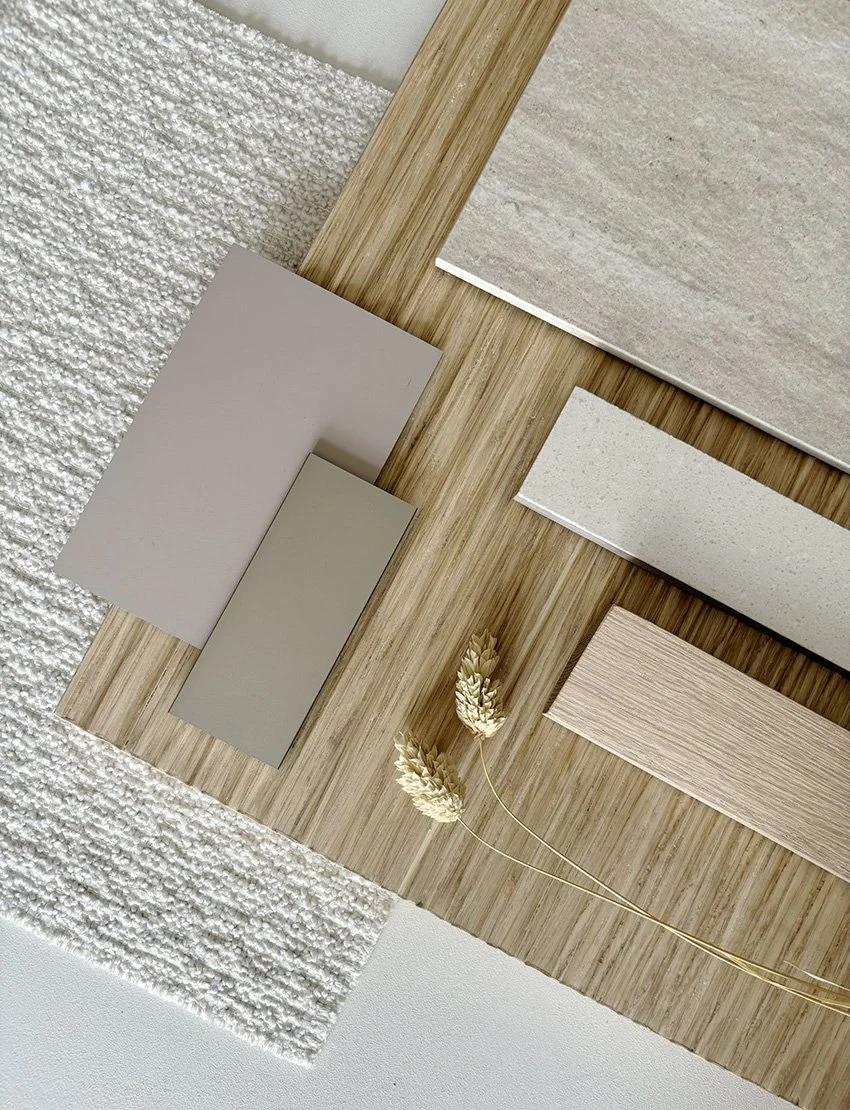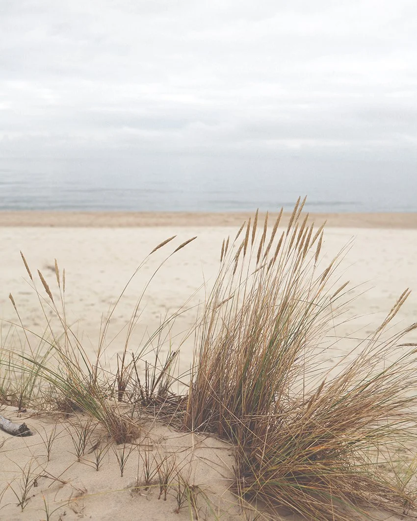 Paleta barw czerpie z pobliskiego obrazu bałtyckiej plaży we mgle. Wszystko jest przygaszone, miękkie i spokojne. Ciepłe i zimnie odcienie szarości, mleczne beże i rozmyte brązy tworzą spokojną przestrzeń.