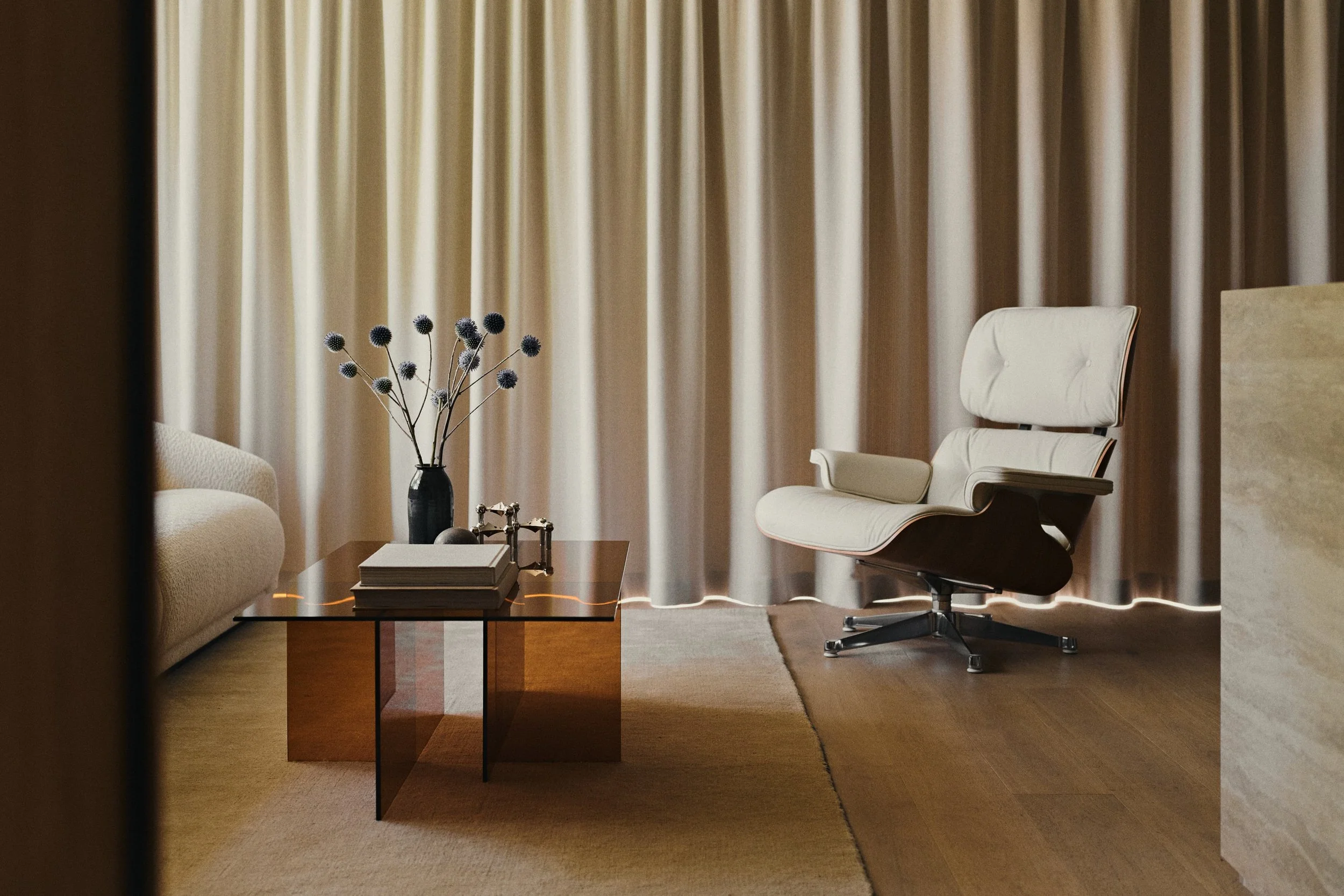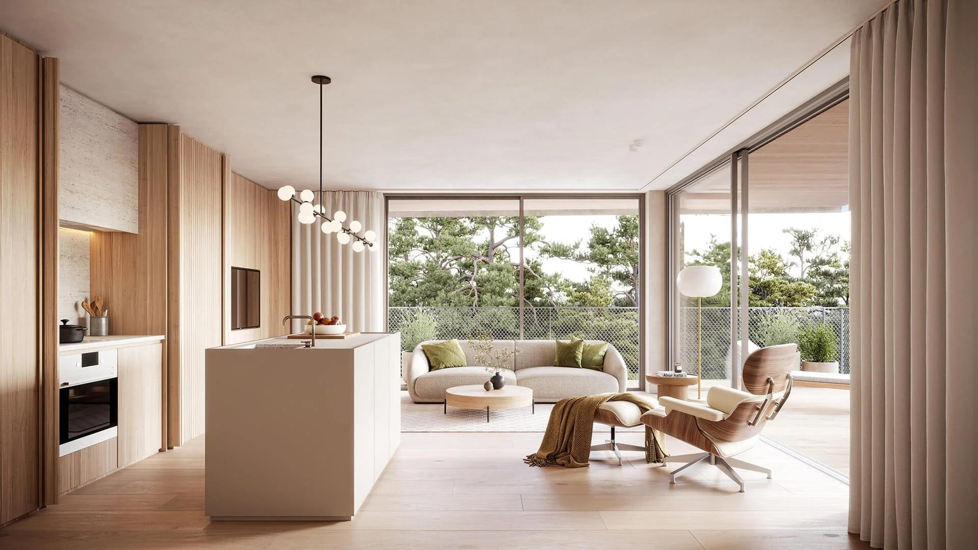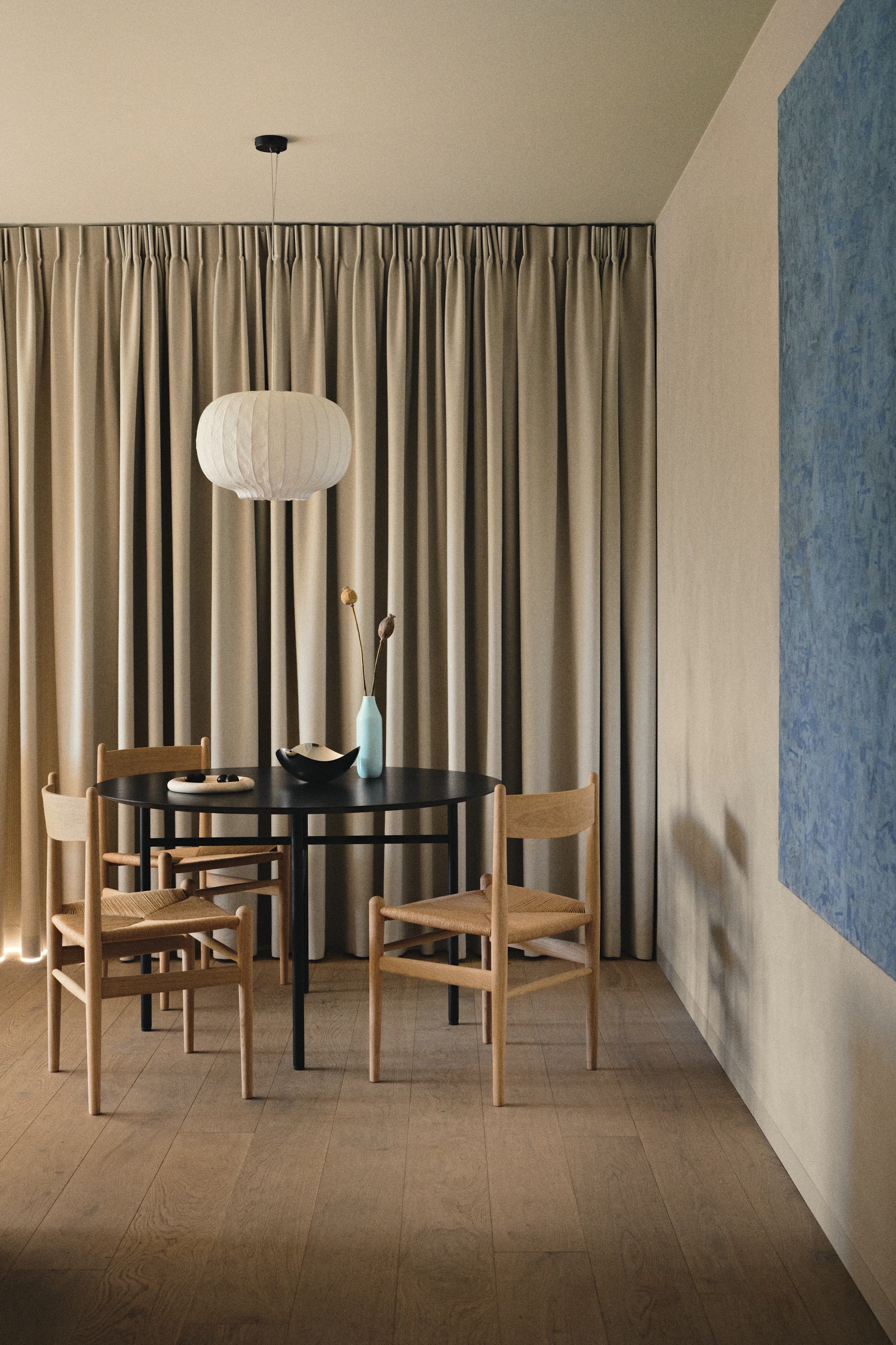 Projekt aranżacji apartamentu pokazowego Willi Jūratė czerpie inspirację z nadmorskiego kontekstu i stanowi konsekwentne rozwinięcie idei architektonicznej obiektu, podkreślając związek z krajobrazem.
